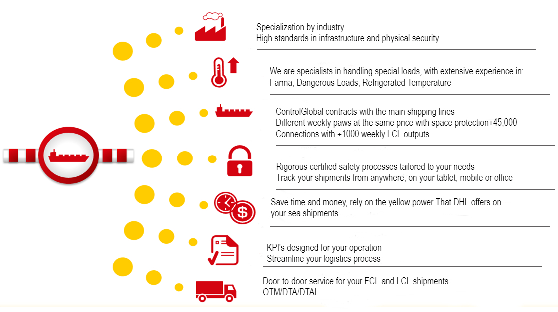 DHL Global Forwarding has offices in several port cities and in various locations around the world, thanks to this we offer to monitor the status of your shipment.We have the ability to move offices: LCL, FCL and Non-containerized load.